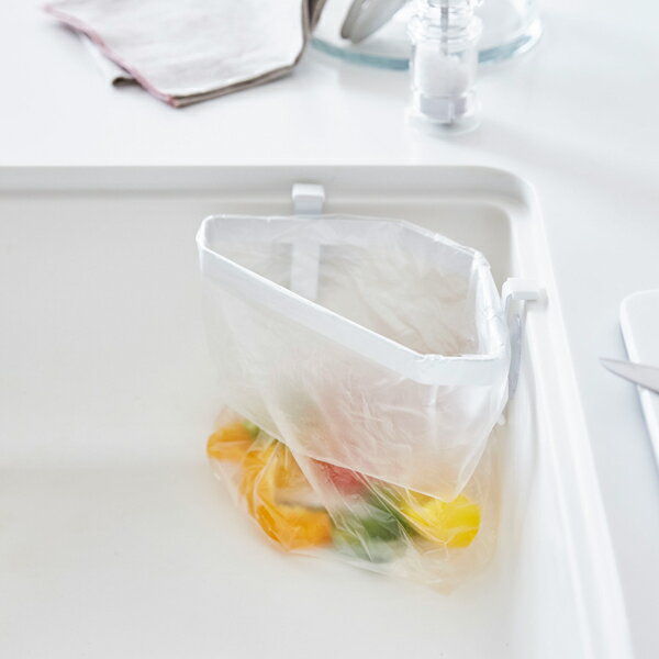 ポリ袋を掛けて調理中にでるゴミをその場でポイ!滑り止めはシンクを傷つけないシリコーン製。