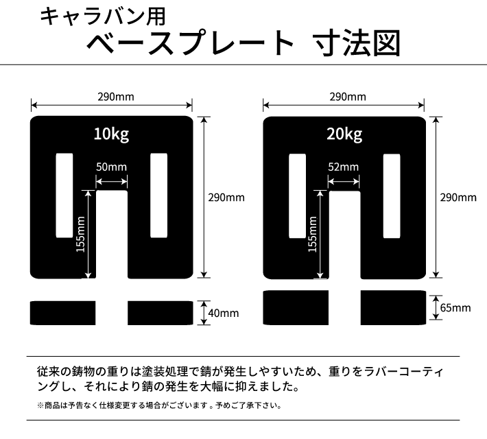 キャラバンテント用ベースプレート10kg 2個セット重ねて使用できます。